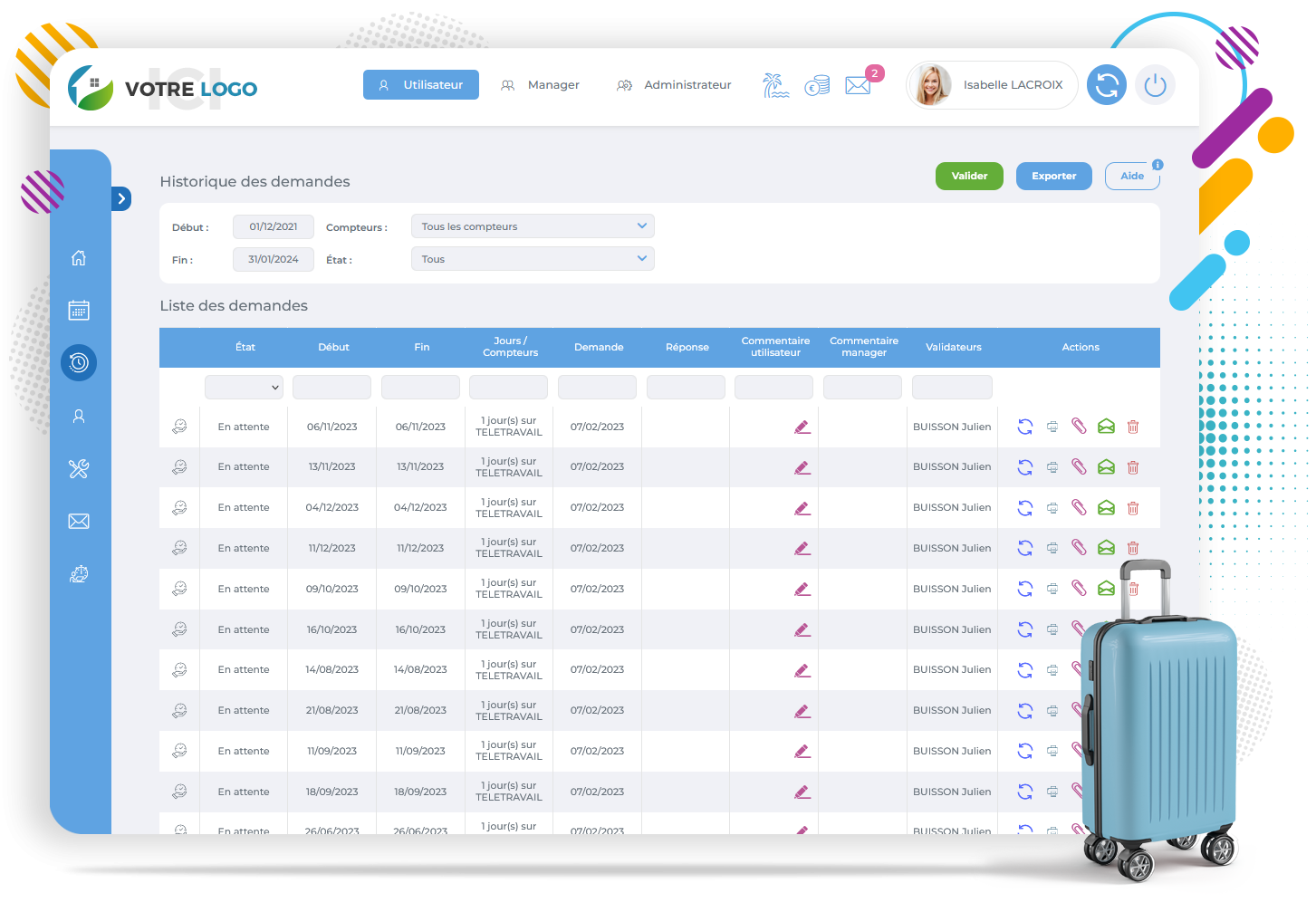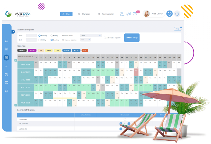 Thanks, to our software you will have the possibility to visualize your planning and your balance in a blink of an eye. A calendar with the bank holidays and holiday periods will be at your disposal to help you.